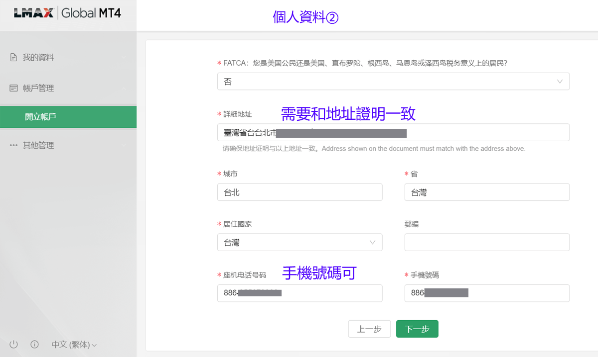 1.點擊LMAX Global註冊鏈接,選擇繁體中文,進入MT4賬戶註冊頁面!