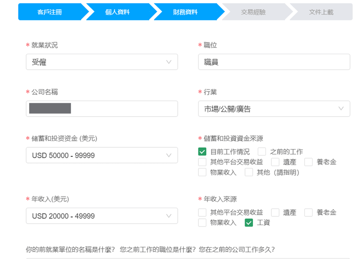 填寫財務資料,主要是為了確認在LMAX交易的資金的來源。這些資金來自哪裡,或者是如何獲得的?
