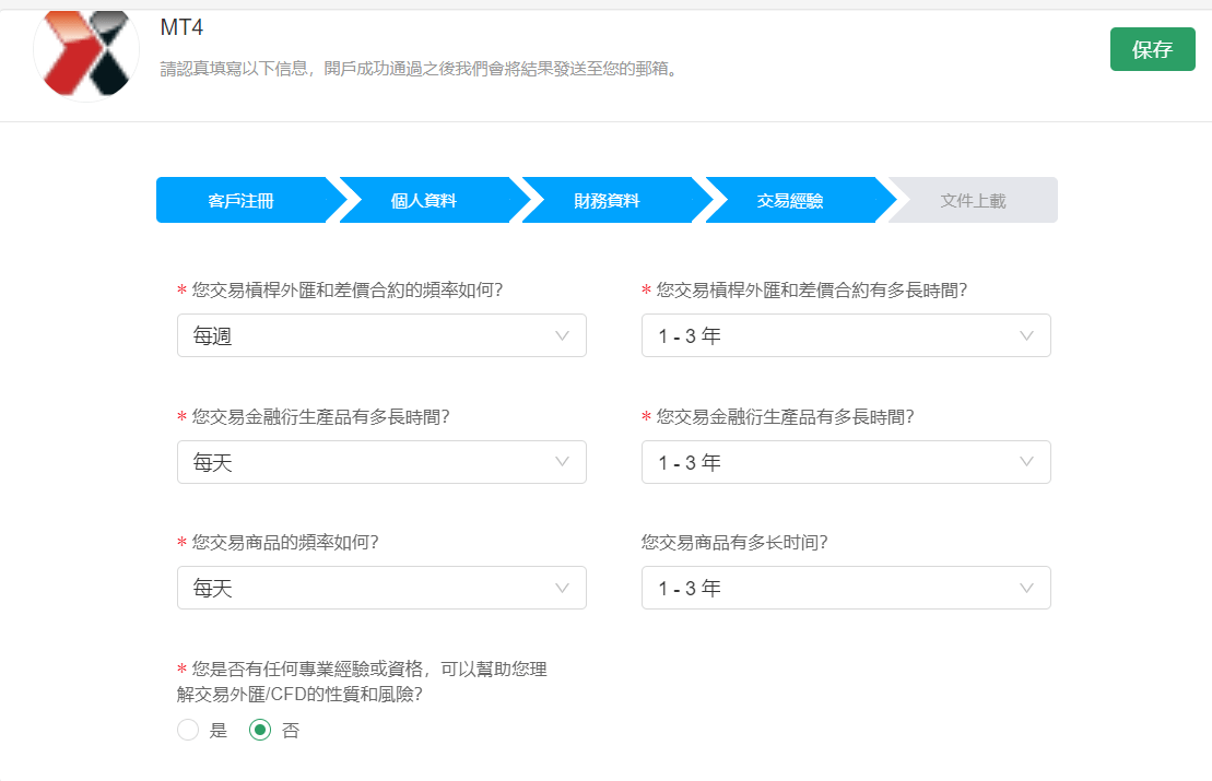 填寫交易經驗,主要是券商想了解投資者的風險承受能力。一些外匯交易商為了控制風險,會對毫無經驗的新手設置交易限制,之後才能放開限制!