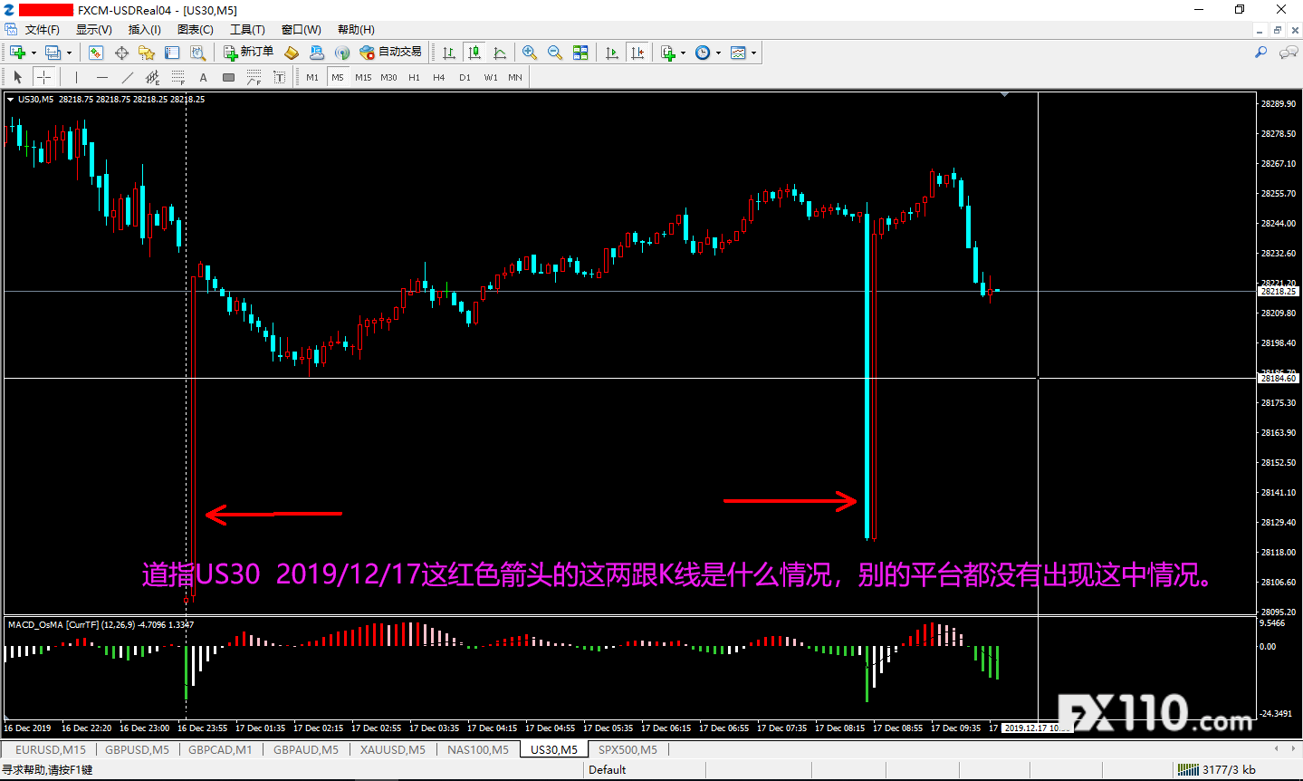 2019/12/17出現這種插針情況是不是想證明FXCM在操縱平台價格呢,是否為了證實前幾年退出美國市場事件中的操縱是價格是真是存在的呢?本來還覺得FXCM不錯的!但出現這樣的情況對資金安全太可怕了!在道指上這樣的K線足以爆倉!